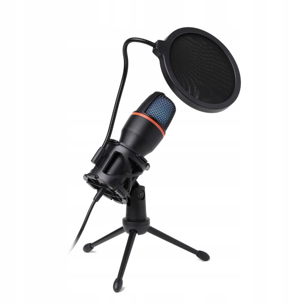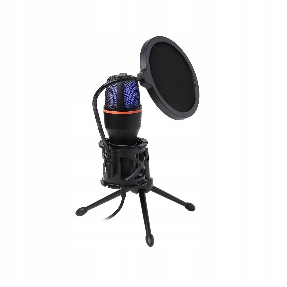 CECHY PRODUKTU Mikrofon stojący pojemnościowy z membraną MART AC-02 trójnóg USB LED