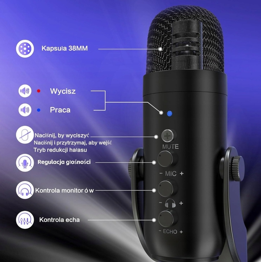 - 【Precyzyjna kontrola wzmocnienia mikrofonu】 Popraw swoje wrażenia z nagrywania dzięki profesjonalnemu pokrętłu wzmocnienia. Z łatwością dostosuj głośność i czułość mikrofonu, aby uzyskać optymalną jakość dźwięku. Zmniejsz wzmocnienie, aby skutecznie zminimalizować odbiór szumów z pomieszczenia, i obróć je w kierunku przeciwnym do ruchu wskazówek zegara, aby zwiększyć czułość. Funkcję Echo można regulować za pomocą dedykowanej kontroli poziomu i dezaktywować według potrzeb. Przypomnienie o wyciszeniu LED sprawi, że nigdy nie zapomnisz wyłączyć wyciszenia w ważnych momentach.