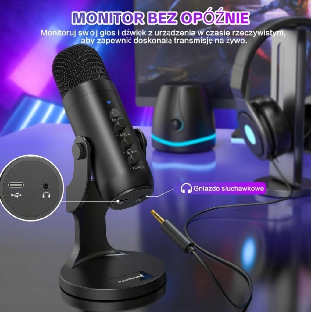 - 【Monitorowanie na żywo】 Ten mikrofon do podcastów zapewnia bezpośrednie monitorowanie bez opóźnień za pośrednictwem gniazda słuchawkowego 3,5 mm. Dzięki temu mikrofonowi do komputera możesz osiągnąć optymalny poziom głośności, idealnie uchwycić dźwięki tła dla swojego filmu i zapewnić bezbłędne nagrywanie dźwięku.