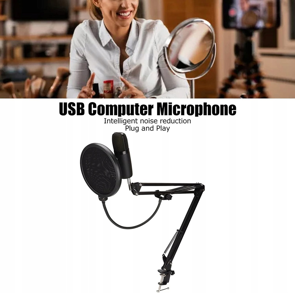 MIKROFON POJEMNOŚCIOWY USB POP FILTR STATYW KABEL