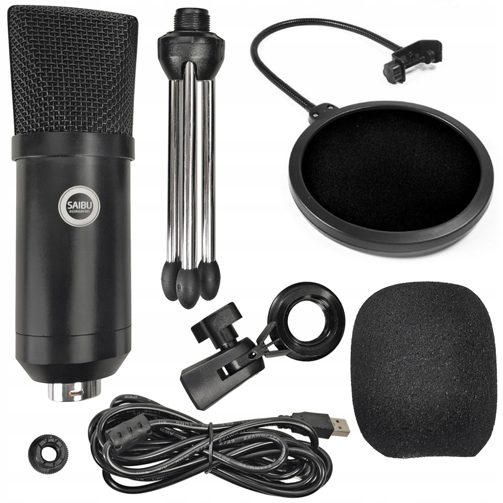SAIBU MU-1 to wysokiej klasy mikrofon pojemnościowy doskonały do domowego oraz profesjonalnego studia nagrań. W zestawie zawiera uchwyt do statywu, statyw typu biurkowy tripod, osłonę przeciwwietrzną oraz przewód USB 2,70 m. Dzięki podłączeniu poprzez USB nie wymaga zasilania phantom 48V ani dodatkowego interfejsu.