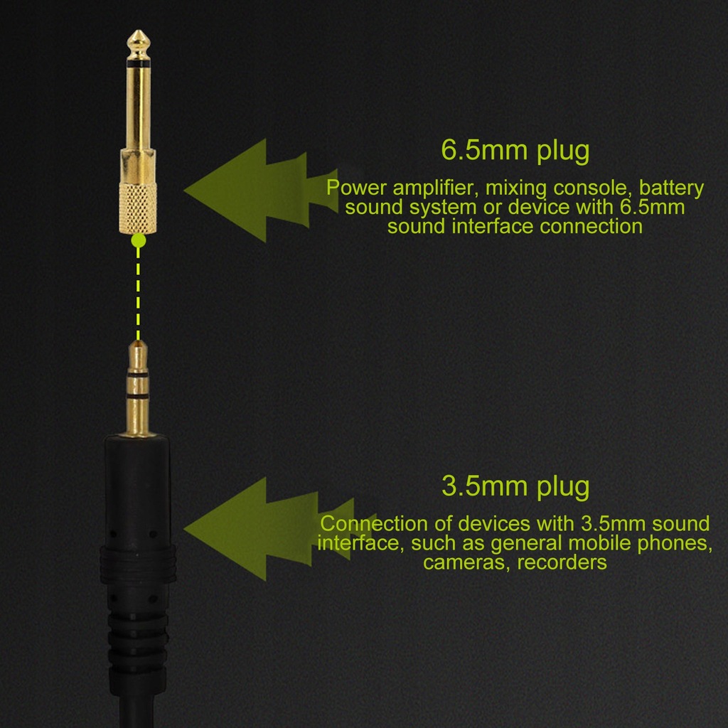 3. Wysoka kompatybilność: Wyposażony w standardowy 3-pinowy interfejs XLR, jest kompatybilny z cyfrowymi lustrzankami jednoobiektywowymi wyposażonymi w dostępne na rynku gniazdo mikrofonu 3,5 mm i jest wyposażony w głowicę konwertującą 6,5 mm. Jest kompatybilny ze wzmacniaczami, mikserami i pogłosami.