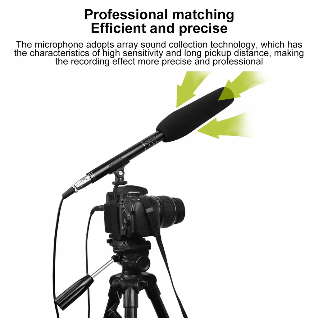 4. Wysoka czułość: Mikrofon pojemnościowy typu shotgun XLR wykorzystuje hartowaną głowicę dźwiękową, która zapewnia doskonały odbiór. Ma duży zakres dynamiki i szerokie pasmo przenoszenia, czysty i jasny odbiór dźwięku.