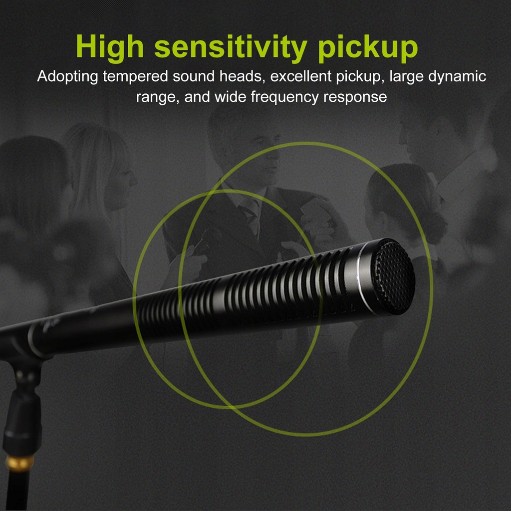 4. Wysoka czułość: Mikrofon pojemnościowy typu shotgun XLR wykorzystuje hartowaną głowicę dźwiękową, która zapewnia doskonały odbiór. Ma duży zakres dynamiki i szerokie pasmo przenoszenia, czysty i jasny odbiór dźwięku.