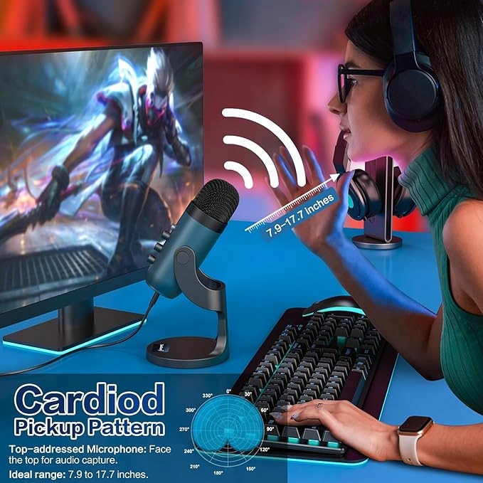 - Mikrofon do podcastów jest wyposażony w interfejs słuchawkowy 3,5 mm, który umożliwia bezpośrednie monitorowanie bez opóźnień. Jest to szczególnie przydatne dla twórców wideo. Dostosuj żądany poziom monitorowania za pomocą regulacji głośności, niezależnie od tego, czy grasz, nagrywasz treści do transmisji na żywo w TikTok, YouTube, Zoom lub na Facebooku.