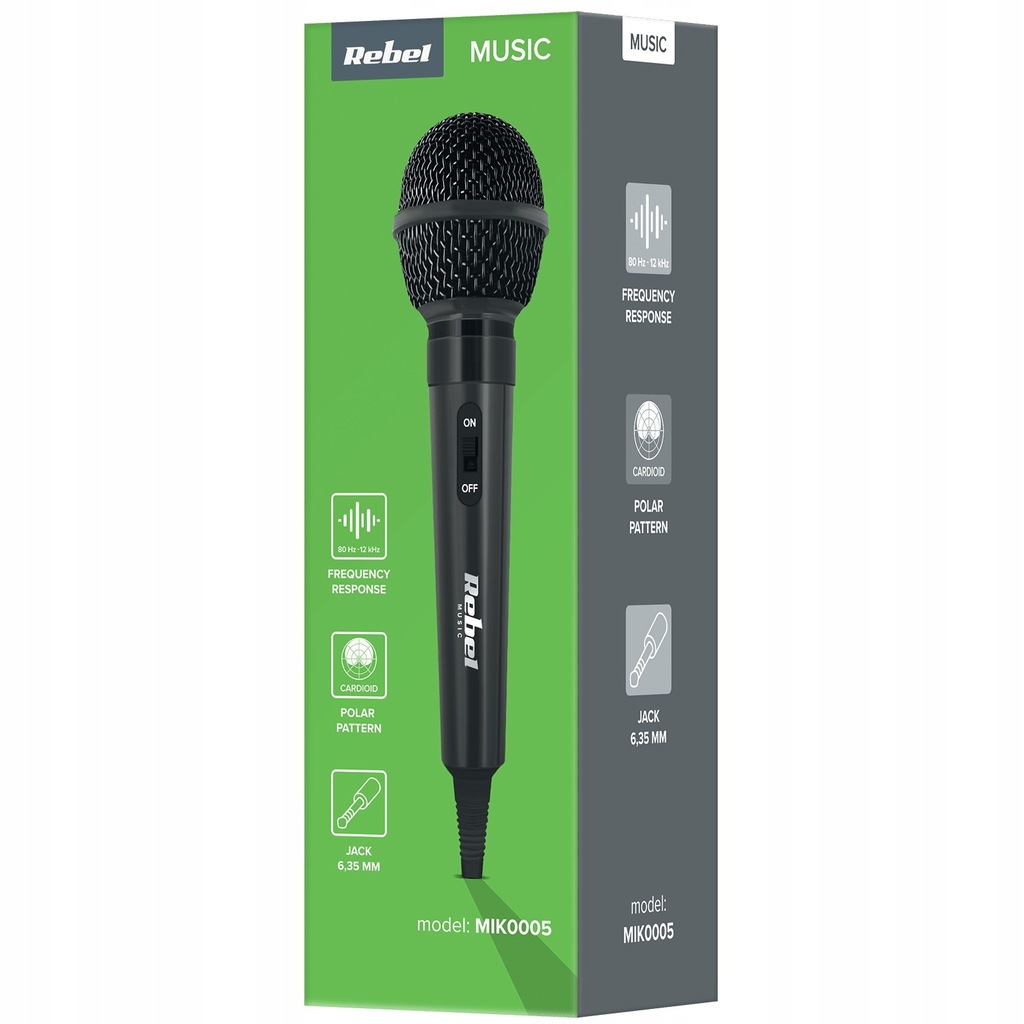 Mikrofon przewodowy do karaoke złącze jack 6.3mm, długość kabla 2 metry w kolorze czarnym