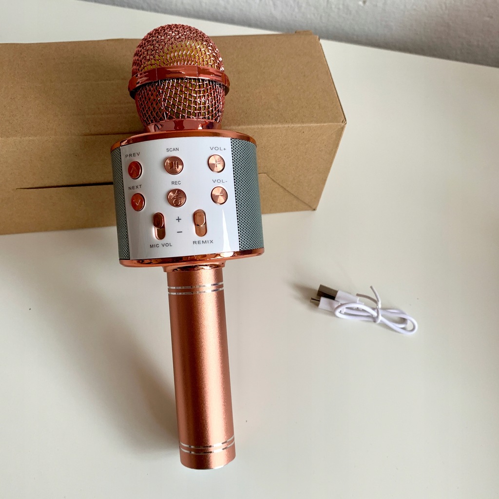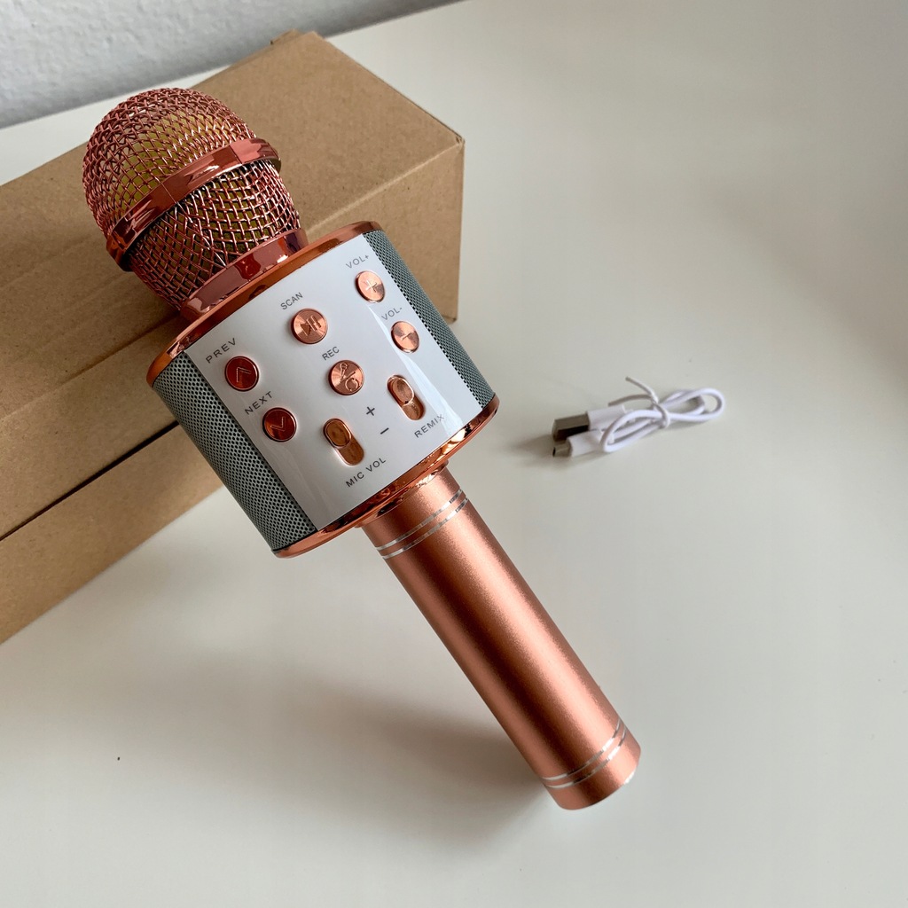 Mikrofon Karaoke z głośnikiem Bluetooth Różowe złoto