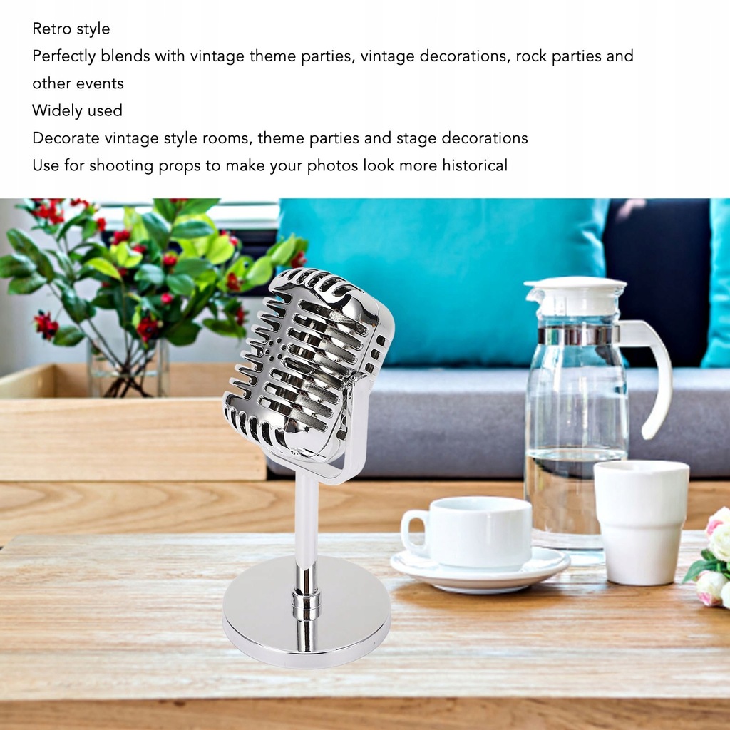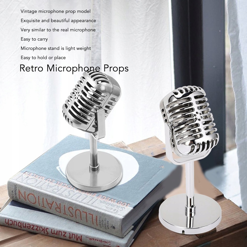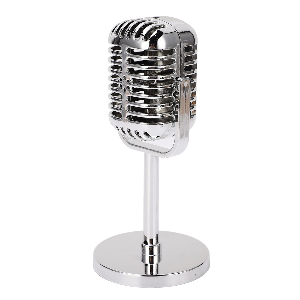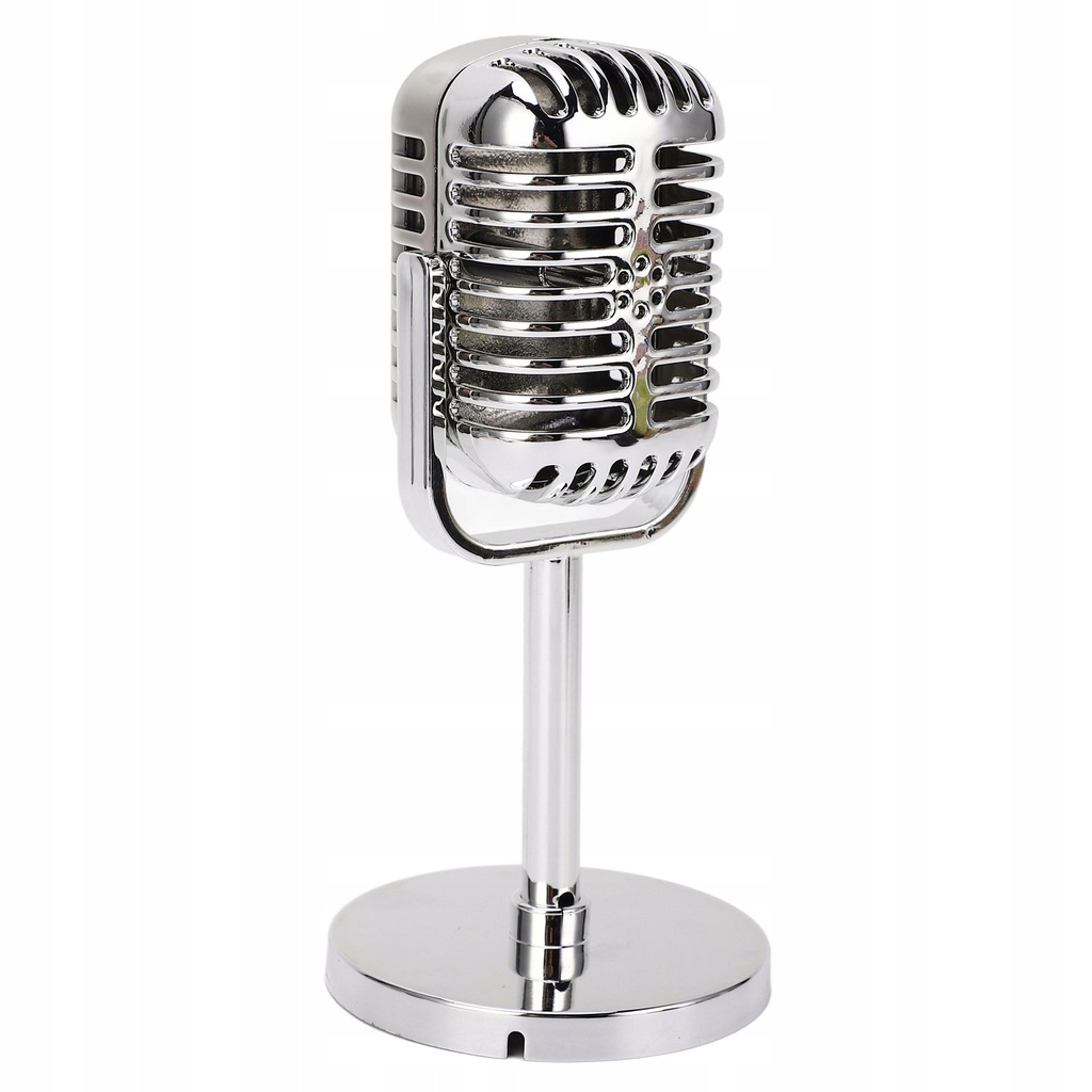 Retro mikrofon rekwizyty symulacja klasyczny fałszywy zabytkowy rekwizyt mikrofonu model do dekoracji barowych galwanizowane srebro