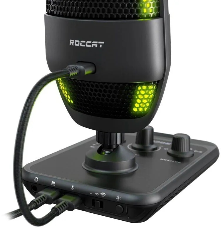 ROCCAT Torch Aimo RGB został wyposażony w funkcję bezdotykowego wyciszenia, która będzie stanowić niesamowite ułatwienie podczas użytkowania mikrofonu. Dzięki niej możesz wyciszyć cały zestaw za pomocą gestu, unikając ryzyka zakłóceń. Oświetlenie Torch Aimo RGB i dioda aktywności umieszczona w mikrofonie sygnalizuje o tym, czy tryb wyciszenia jest uruchomiony.