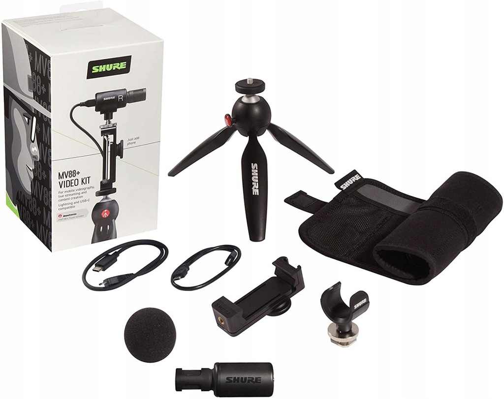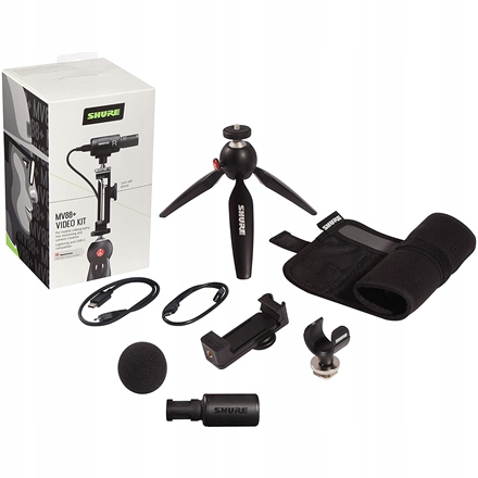 Mikrofon Shure MV88+DIG-VIDKIT z akcesoriami do wideo, czarny