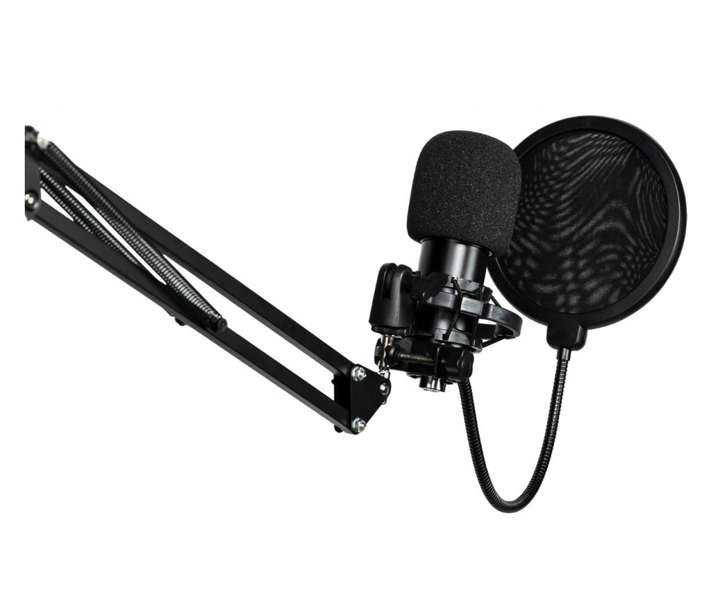 - Dołączone akcesoria: Kabel USB; Filtr pop; Uchwyt antywstrząsowy; Klips do kabla; Instrukcja obsługi; Regulowane ramię
