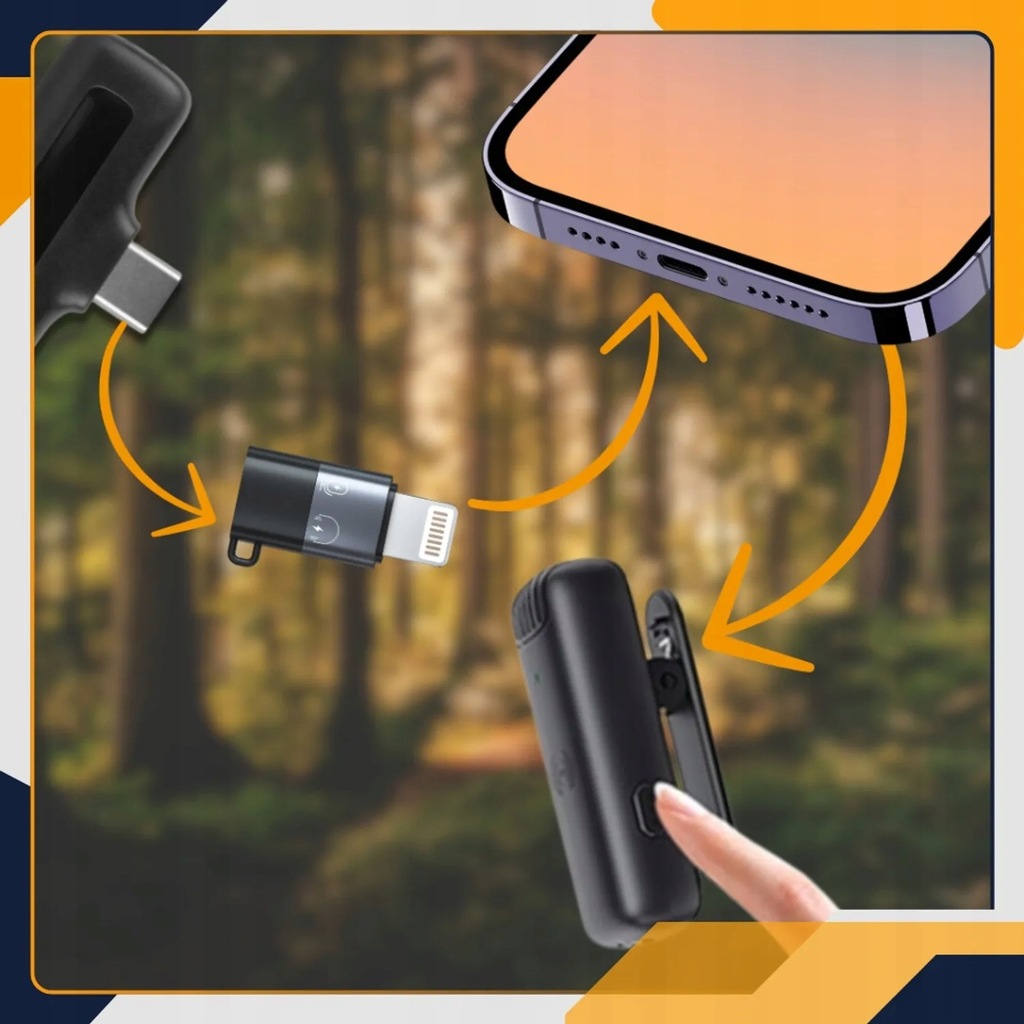 BEZPRZEWODOWY MIKROFON KRAWATOWY PODWÓJNY DO iPhone ANDROID USBC + Lighting