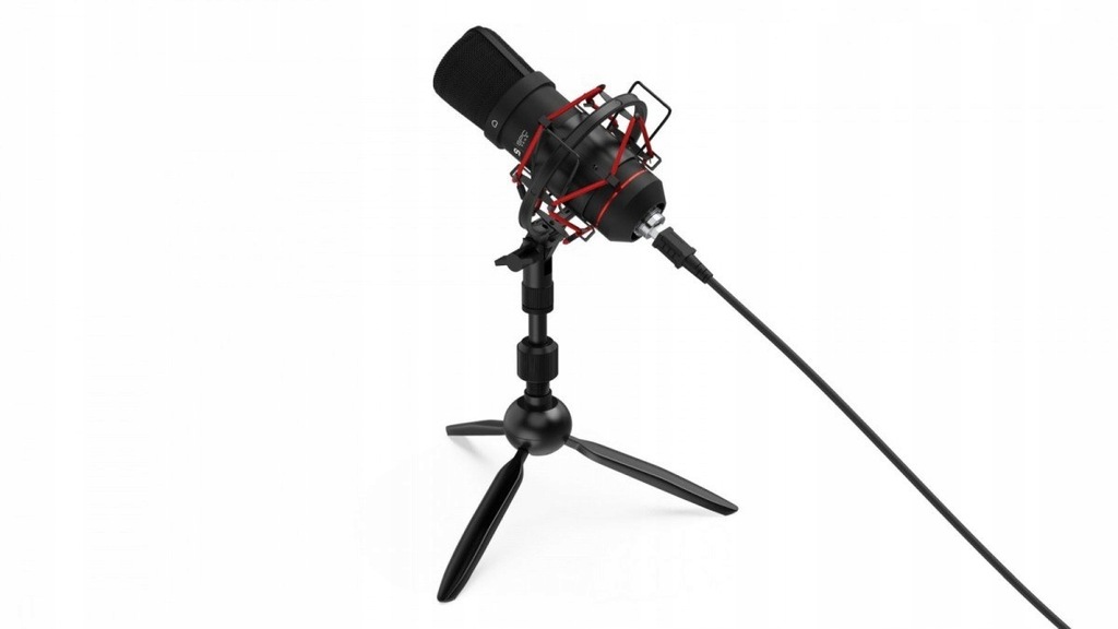 Pełny zestaw akcesoriówMikrofon SPC Gear SM900T Streaming USB Microphone dostarczany jest wraz z całym zestawem przydatnych akcesoriów. Sam mikrofon montowany jest w koszyku antywstrząsowym, który w znacznym stopniu eliminuje różnego rodzaju drgania wywołane np. przez pisanie na klawiaturze bądź stukanie w blat biurka. Piankowy POP filtr z kolei, blokuje nadmierny ruch powietrza, na przykład podczas oddychania bądź wymawiania tzw. głosek wybuchowych oraz chroni mikrofon przed zabrudzeniami. Rozkładany, masywny trójnóg (tripod), będący podstawą dla SM900T, wykonany jest z dobrej jakości materiału, co zapewnia wysoką elastyczność w dobraniu jego pozycji, a przede wszystkim stabilne ustawienie mikrofonu na biurku. Składane nogi podstawy umożliwiają łatwe przenoszenie zestawu. SM900T wyposażony został w przewód USB o długości 1,8 m.