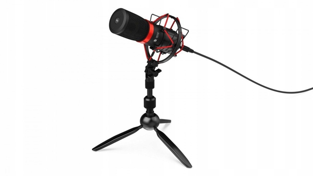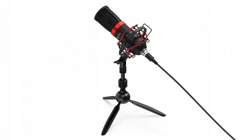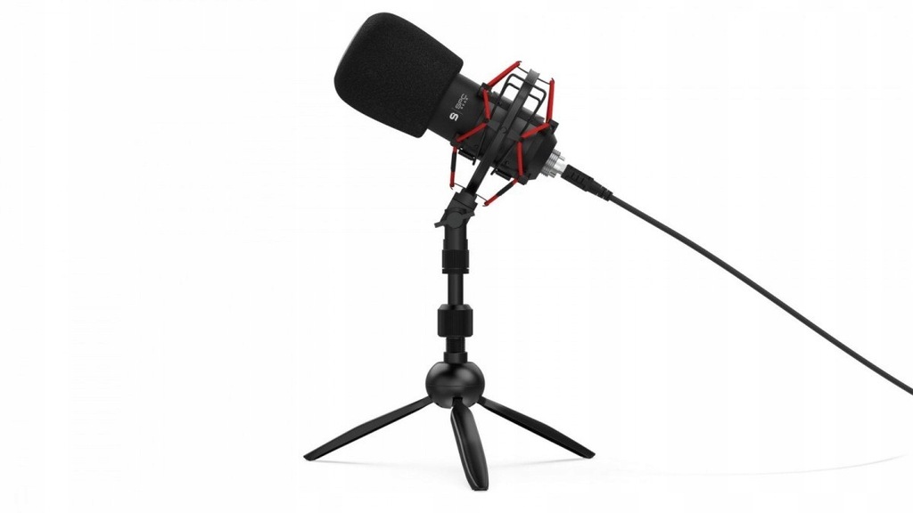 Pełny zestaw akcesoriówMikrofon SPC Gear SM950T Streaming USB Microphone dostarczany jest wraz z całym zestawem przydatnych akcesoriów. Sam mikrofon montowany jest w koszyku antywstrząsowym, który w znacznym stopniu eliminuje różnego rodzaju drgania wywołane np. przez pisanie na klawiaturze bądź stukanie w blat biurka. Piankowy POP filtr z kolei, blokuje nadmierny ruch powietrza, na przykład podczas oddychania bądź wymawiania tzw. głosek wybuchowych oraz chroni mikrofon przed zabrudzeniami. Rozkładany, masywny trójnóg (tripod), będący podstawą dla SM950T, wykonany jest z dobrej jakości materiału, co zapewnia wysoką elastyczność w dobraniu jego pozycji, a przede wszystkim stabilne ustawienie mikrofonu na biurku. Składane nogi podstawy umożliwiają łatwe przenoszenie zestawu. SM950T wyposażony został w przewód USB o długości 1,8 m.