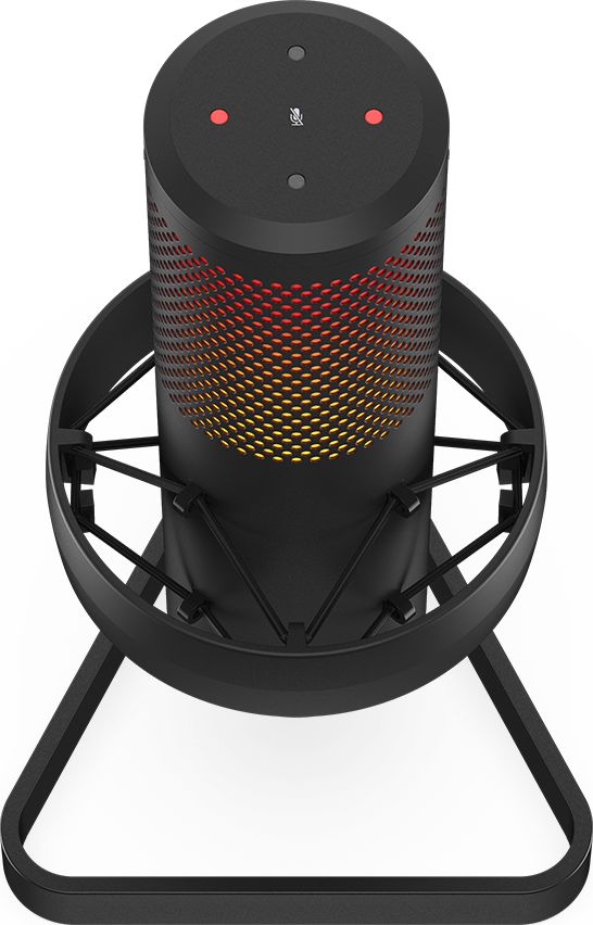 Na górze mikrofonu AXIS znajduje się dotykowy przycisk do wyciszania. Dogodna lokalizacja przycisku pozwala szybko wygłuszyć mikrofon podczas rozgrywki bez sięgania do skrótu klawiszowego na klawiaturze lub też minimalizowania gry. To, czy mikrofon jest wyciszony, można z łatwością rozpoznać na podstawie czerwonego podświetlenia diod LED na górze konstrukcji oraz perforowanej części obudowy.