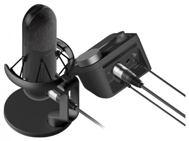 - zawartość zestawu: mikrofon | mikser strumieniowy | 2 x przewód USB-C/USB-A | przewód XLR | zasilacz | statyw | adapter do wysięgnika