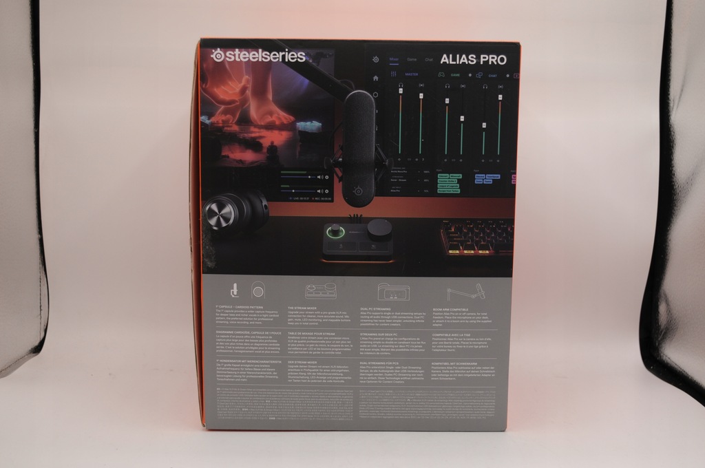 Przedmiotem sprzedaży jest mikrofon SteelSeries Alias Pro + Stream Mixer. Urządzenie jest w pełni sprawne technicznie, w bardzo dobrym stanie wizualnym - z niewielkimi śladami użytkowania.
