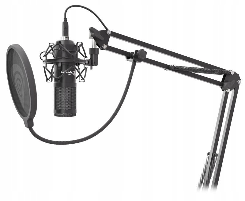 - W zestawie kosz na mikrofon, pop-filtr, mocowane metalowe ramię, gąbka