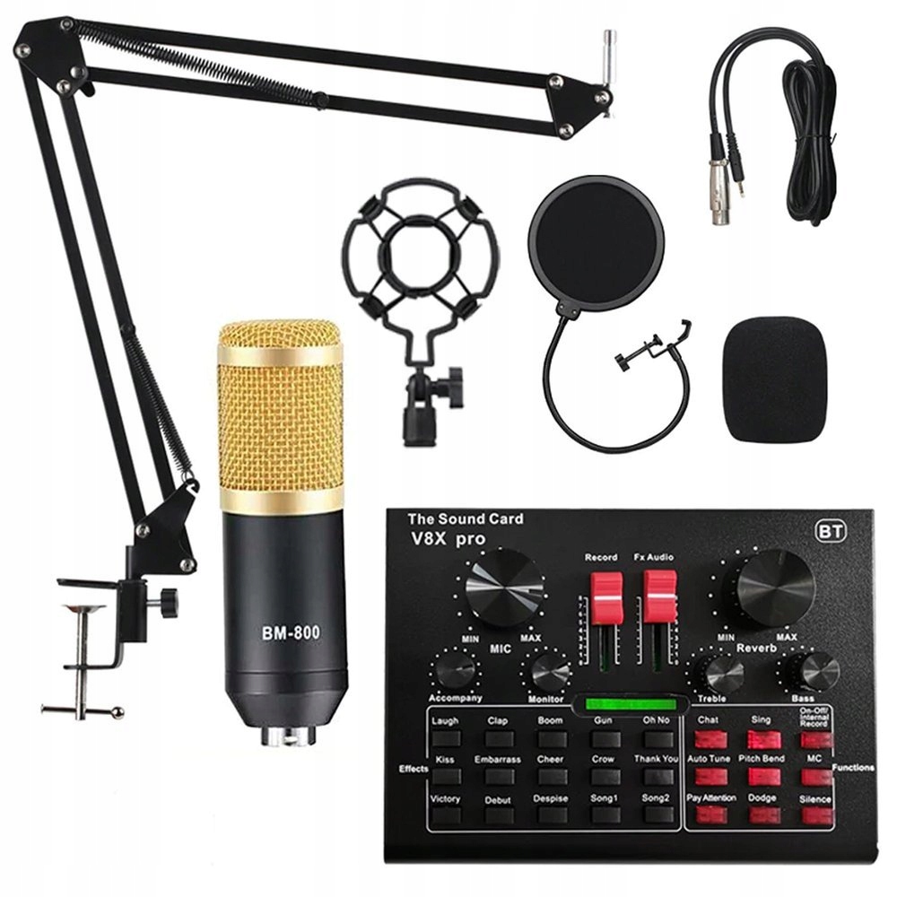 Mikrofon studyjny karaoke BM800 Pro z wielofunkcyjną kartą dźwiękową Bluetooth V8X PRO