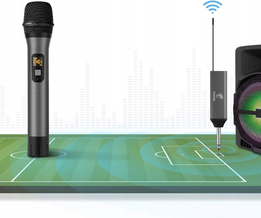 Obszar działania: 60 m (pole widzenia), nadaje się do aktywności wewnątrz i na zewnątrz, takich jak karaoke, wesele, do kościoła, na konferencje i małe występy.
