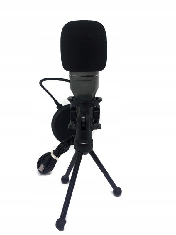 W komplecie: mikrofon, statyw, pop filtr
