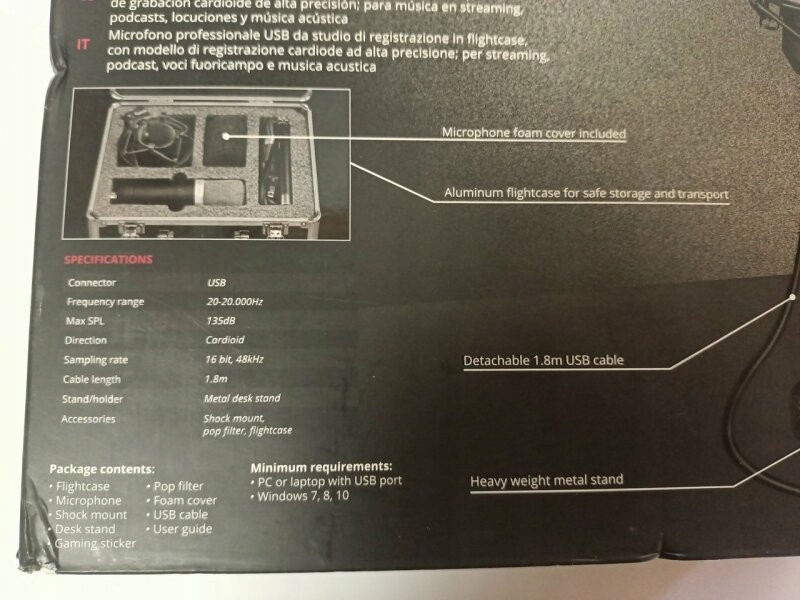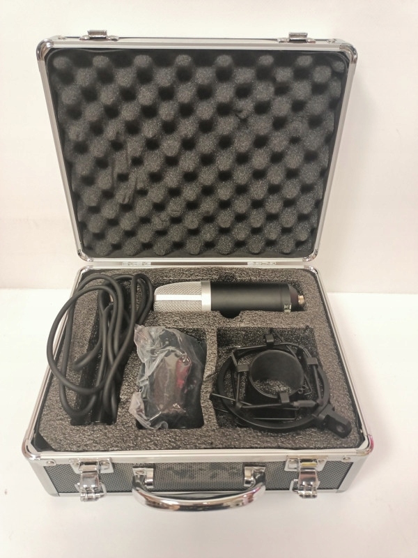 w zestawie mikrofon z kablem i uchwytem w walizce