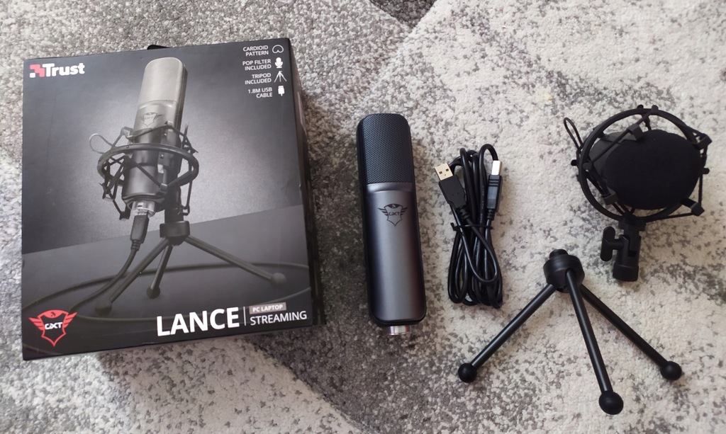 - Akcesoria w zestawie: - Mikrofon - Filtr pop- Mocowanie wstrząsowe - Statyw do statywu - Kabel USB-A do USB-B - Instrukcja obsługi - Naklejka
