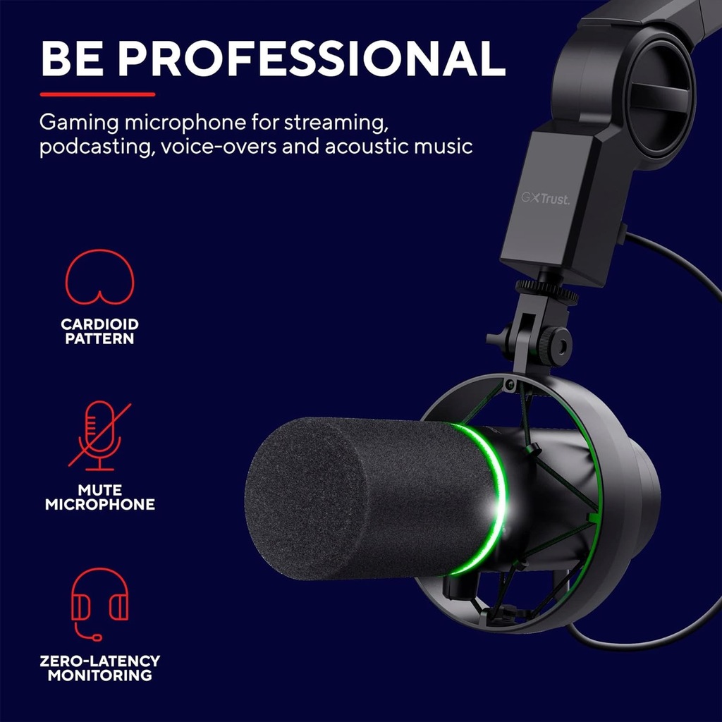 Trust Gaming GXT 255+ Onyx Mikrofon Streamingowy Studyjny z Ramieniem