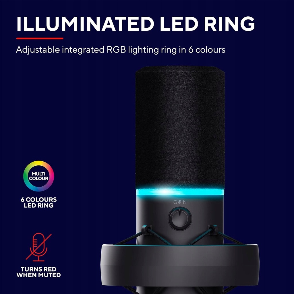 Dodaj trochę barw do swojego wystroju! Onyx świeci się w 6 różnych kolorach, w tym na czerwono, gdy mikrofon jest wyciszony.