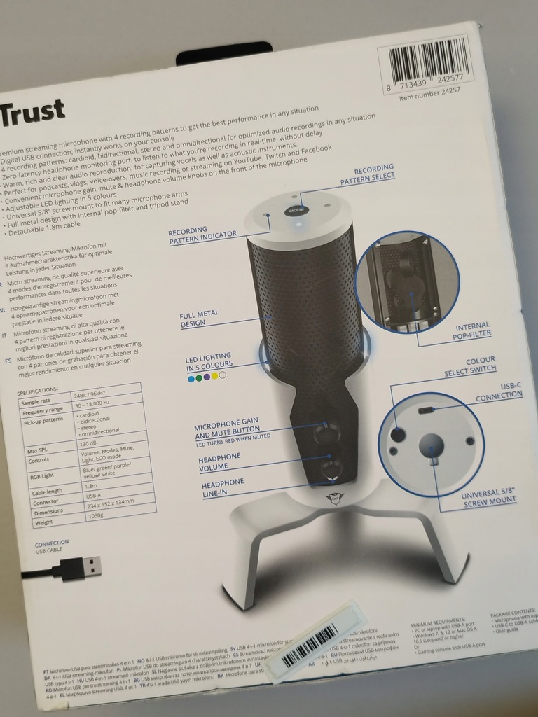 Trust GXT 258 Fyru to mikrofon do streamingu klasy premium o 4 charakterystykach kierunkowości, który zapewnia najlepsze efekty w każdych warunkach. Dzięki cyfrowemu złączu USB, mikrofon jest natychmiast gotowy do pracy na dowolnym komputerze i laptopie.