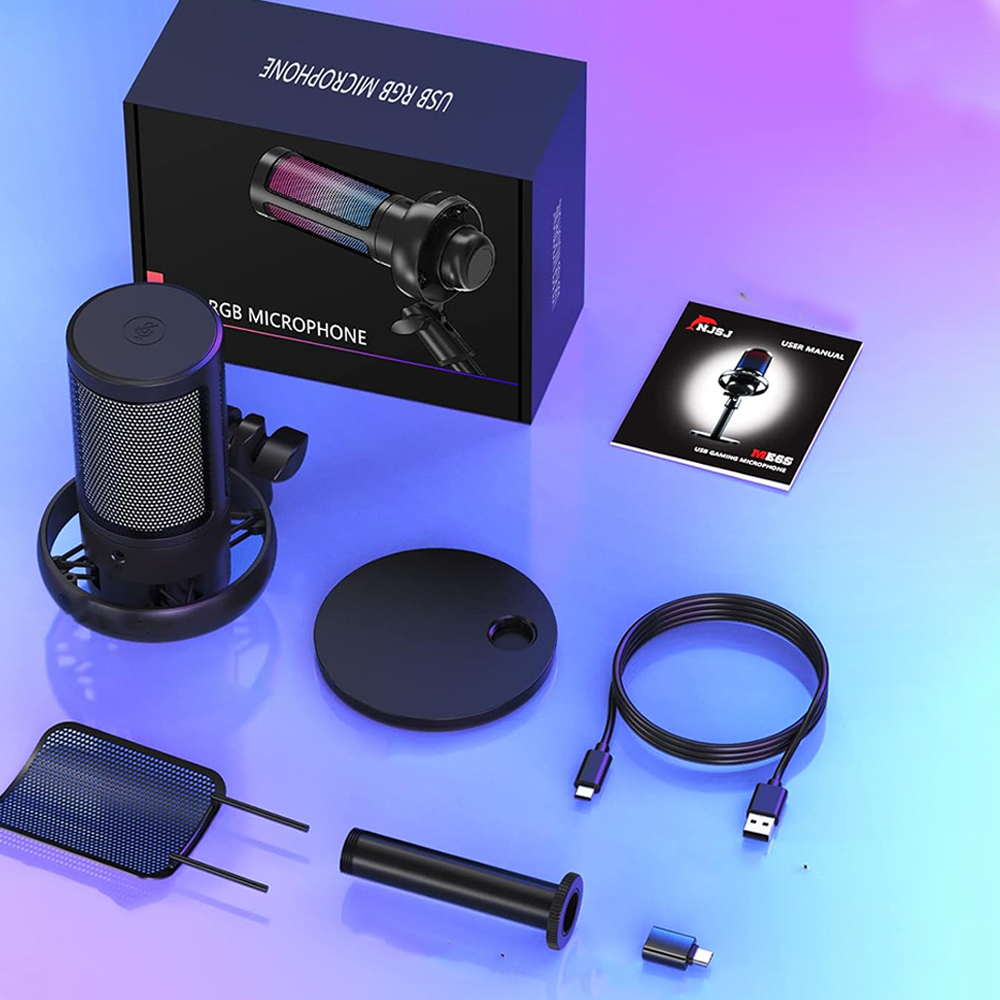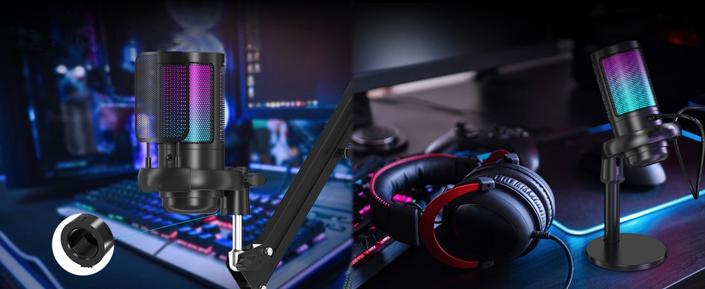 - Mikrofon USB do gier PC jest wyposażony w filtr pop i uchwyt amortyzujący.
