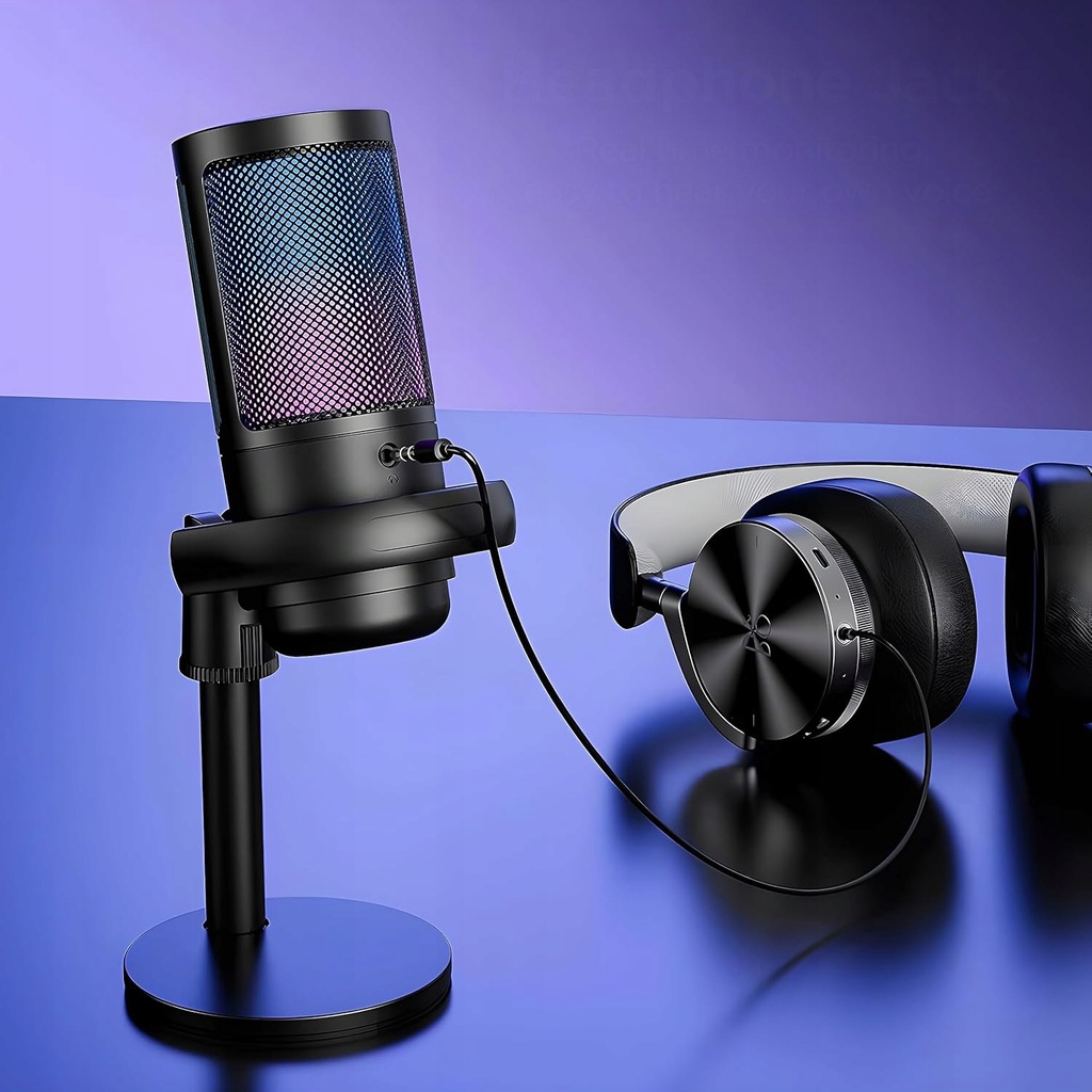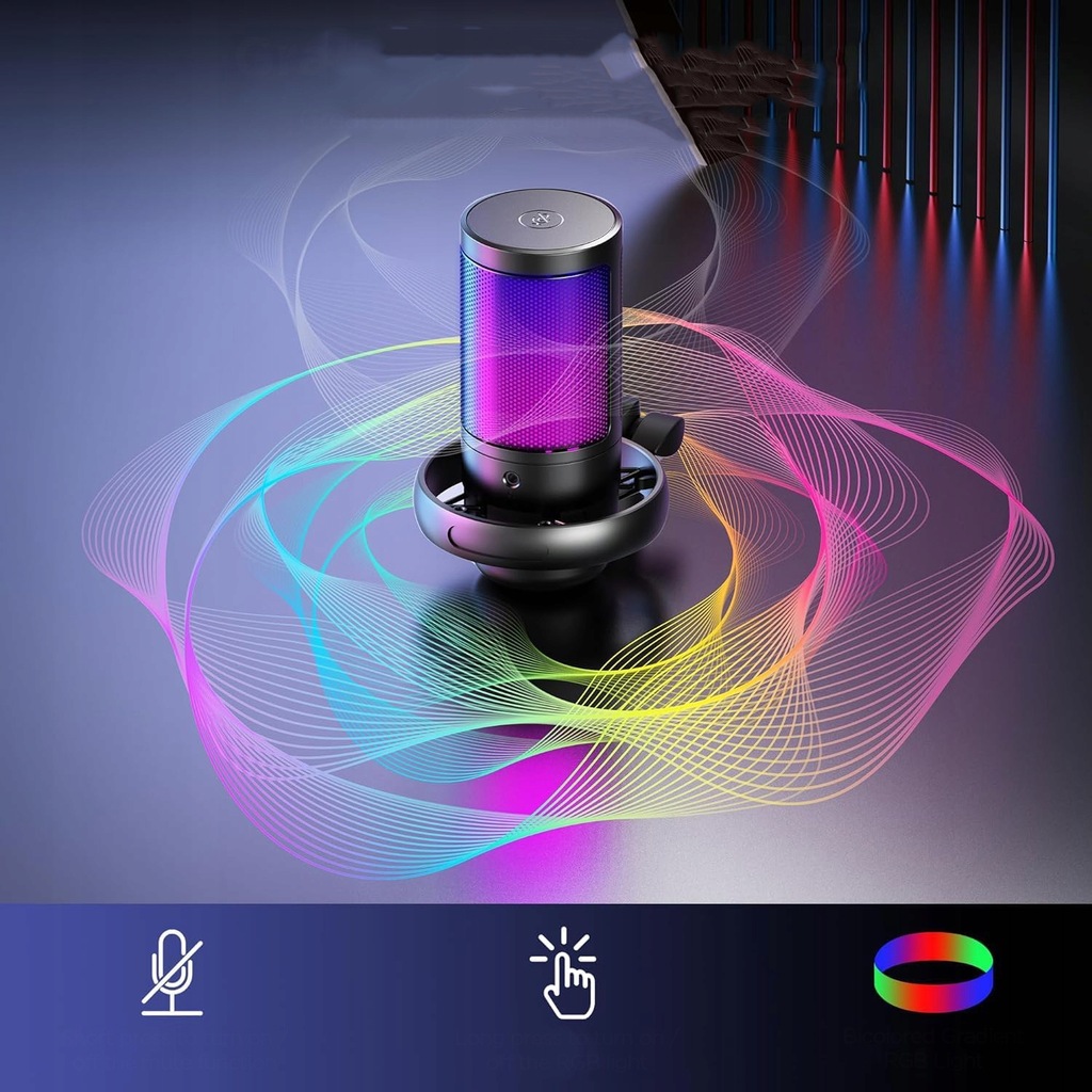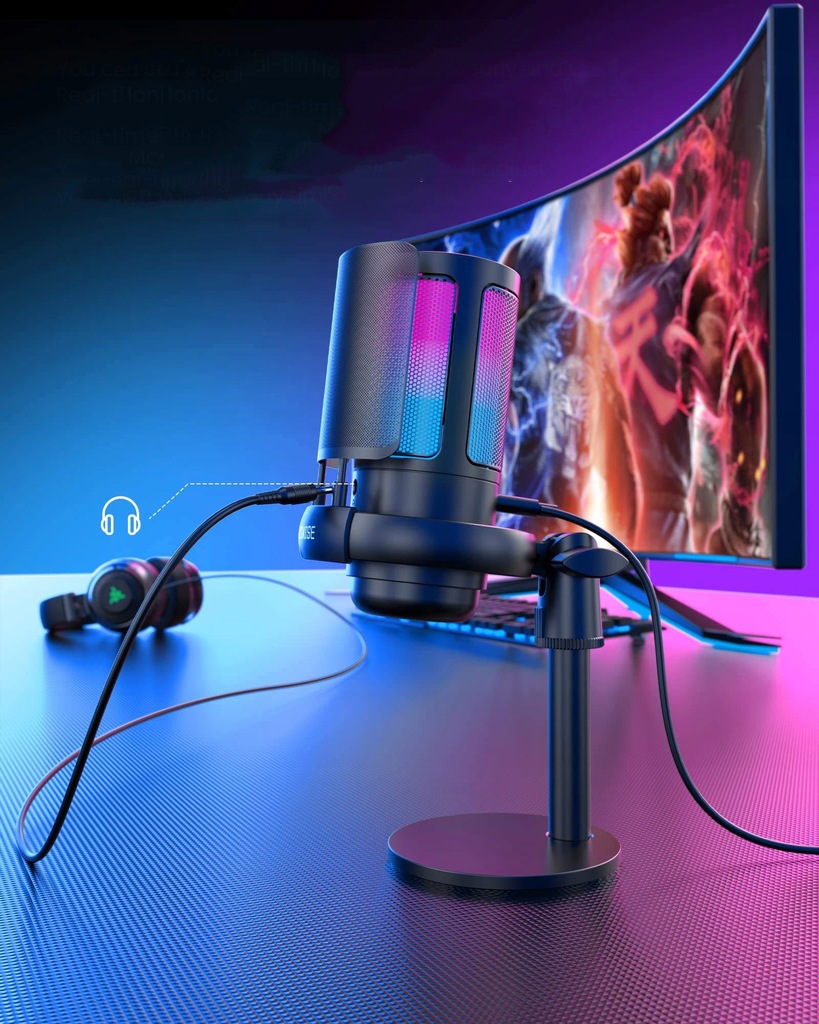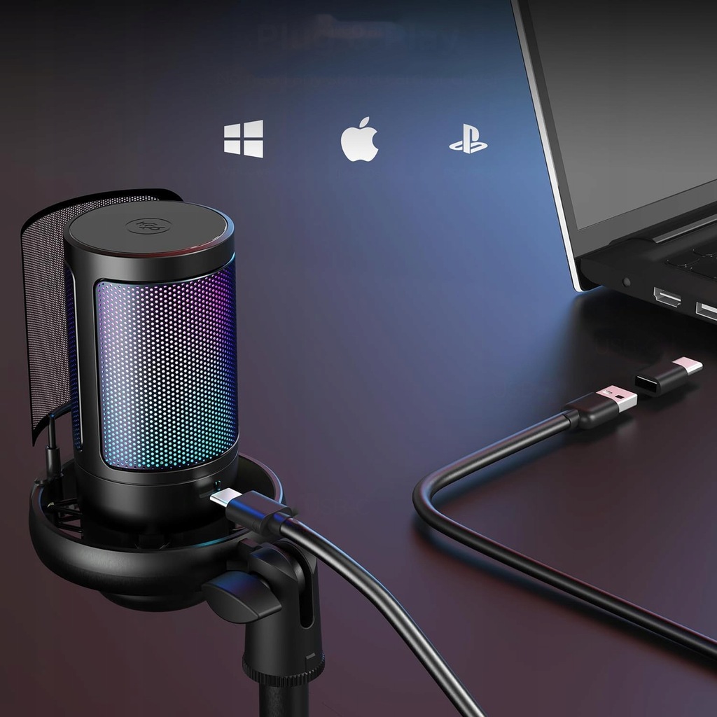 ✅MIKROFON USB DO GIER POJEMNOŚCIOWY MIKROFON KOMPUTEROWY RGB ZE WSPORNIKIEM✅