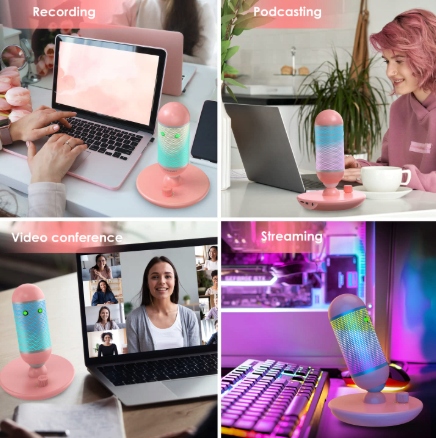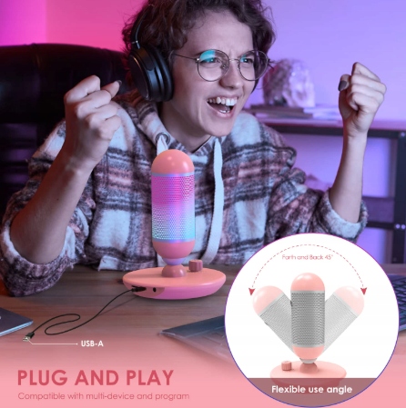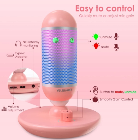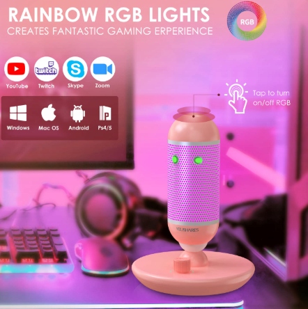 Profesjonalny mikrofon pojemnościowy YOUSHARES to idealne rozwiązanie dla graczy, streamerów, youtuberów, a także do wideokonferencji. Stylowy design, kolorowe podświetlenie RGB oraz łatwość obsługi sprawiają, że mikrofon sprawdzi się w każdej sytuacji – od podcastów po transmisje na żywo.