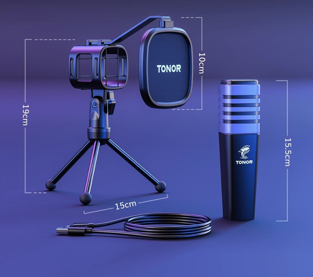 Mikrofon USB RGB Kardioidalny Mikrofon Pojemnościowy TONOR Komputer PC ze Statywem Filtr Pop ocowanie Wstrząsowe do Gier, Strumieniowanie, Podcasting, Kompatybilny z Laptopem Stacjonarnym, TC30 z RGB