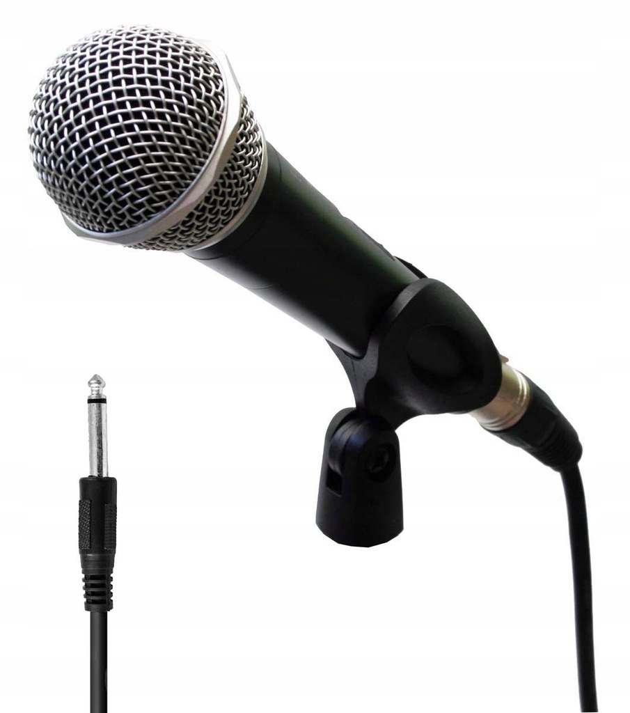 Mikrofon jest dostarczany w plastikowej obudowie, zawierającej pasujący kabel mikrofonowy o długości 5 m z wtyczką jack 6,3 mm.