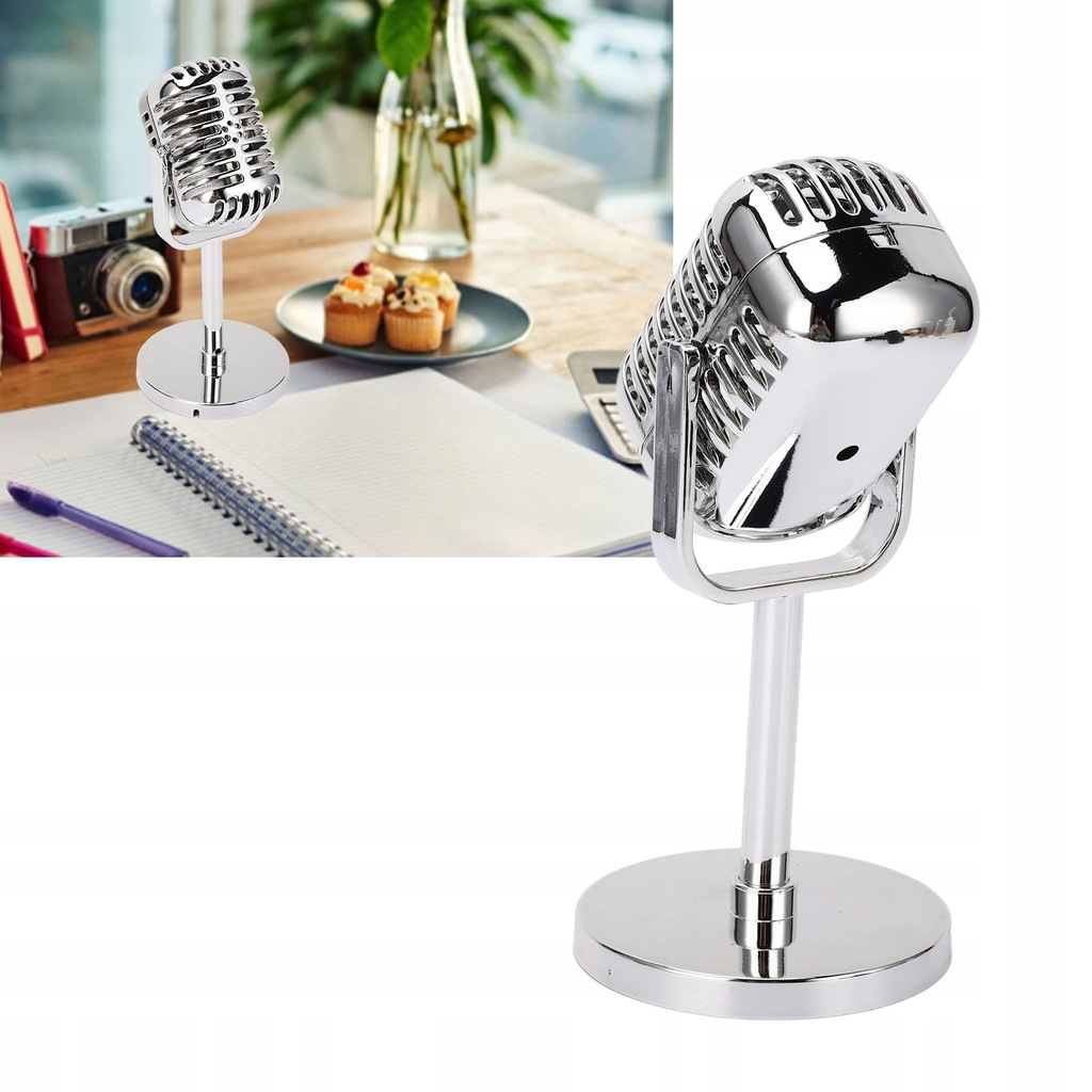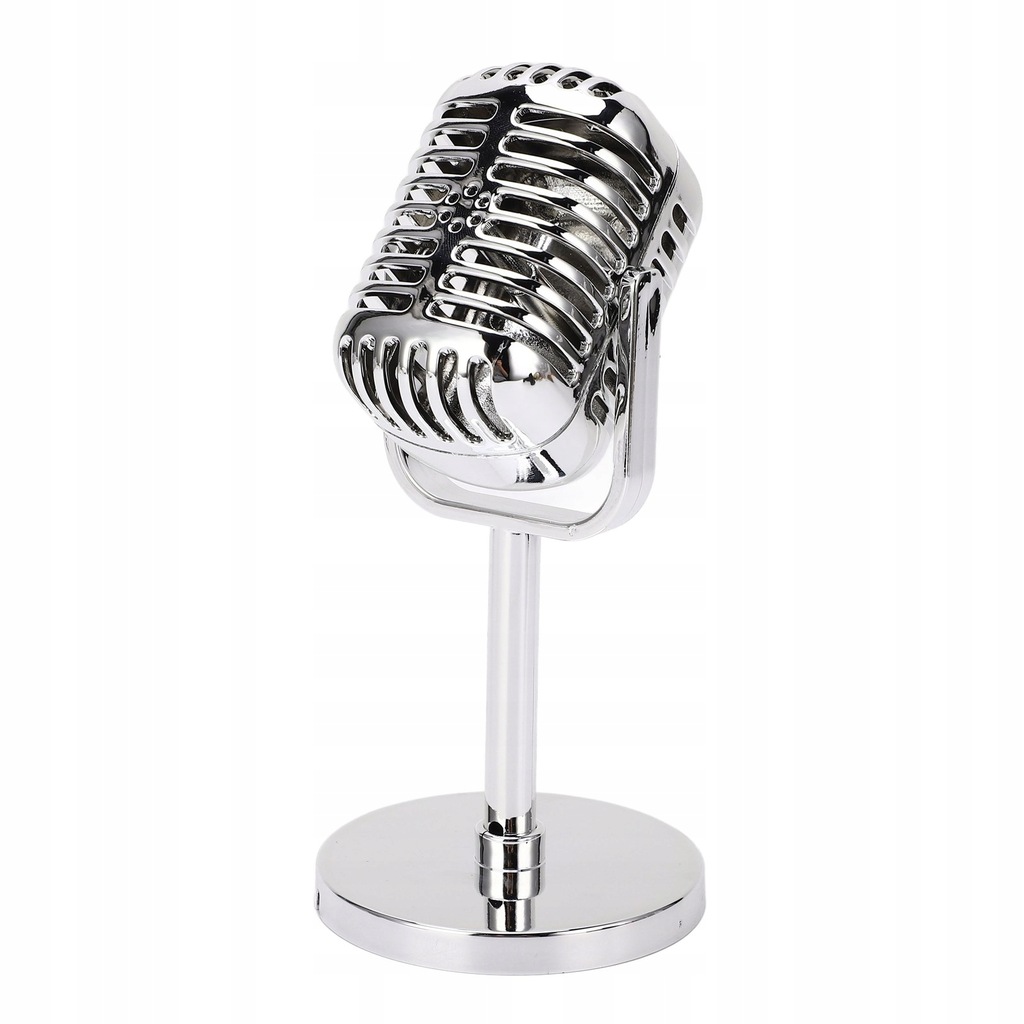 Retro mikrofon rekwizyty symulacja klasyczny fałszywy zabytkowy rekwizyt mikrofonu model do dekoracji barowych galwanizowane srebro