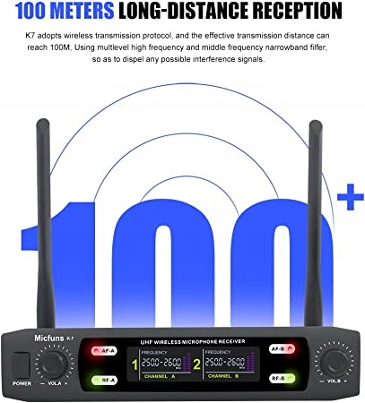 - WYDAJNOŚĆ BEZPRZEWODOWA: Podwójny system mikrofonów bezprzewodowych VHF o zakresie częstotliwości od 230 do 250 MHz.