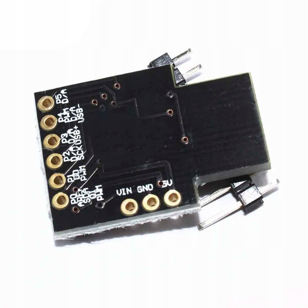 ATtiny85 Digispark to bardzo kompaktowy mikrokontroler ze zintegrowanym złącze USB. Jest to idealne rozwiązanie dla projektów elektronicznych, które wymagają niewielkiego rozmiaru, niskiego poboru mocy i łatwości programowania. ATTiny85 to 8-bitowy mikrokontroler z rdzeniem AVR, który możemy programować przy użyciu ArduinoIDE. Na płytce znajdziemy programowalną diodę, 6 wyjść cyfrowych, z czego 3 mogą działać jako PWM i 4 jako ADC. Moduł wspiera komunikację I2C oraz SPI i może być zasilany zarówno z portu USB jak i przez wejście VIN napięciem z zakresu 7V do 35V.