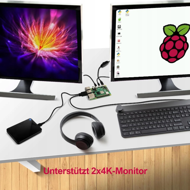 Zestaw startowy 4GB RAM oferuje szybszą wydajność: 4GB RAM w połączeniu z czterordzeniowym Cortex-A72 (ARM v8) 64-bit o częstotliwości 1.5GHz pozwala w pełni wykorzystać możliwości CPU i RAM. Obsługuje strumieniowanie HEVC 4K w 60 fps oraz zarządzanie 2 ekranami w jakości 4K. Szybszy Ethernet Gigabit i wsparcie Power-over-Ethernet.