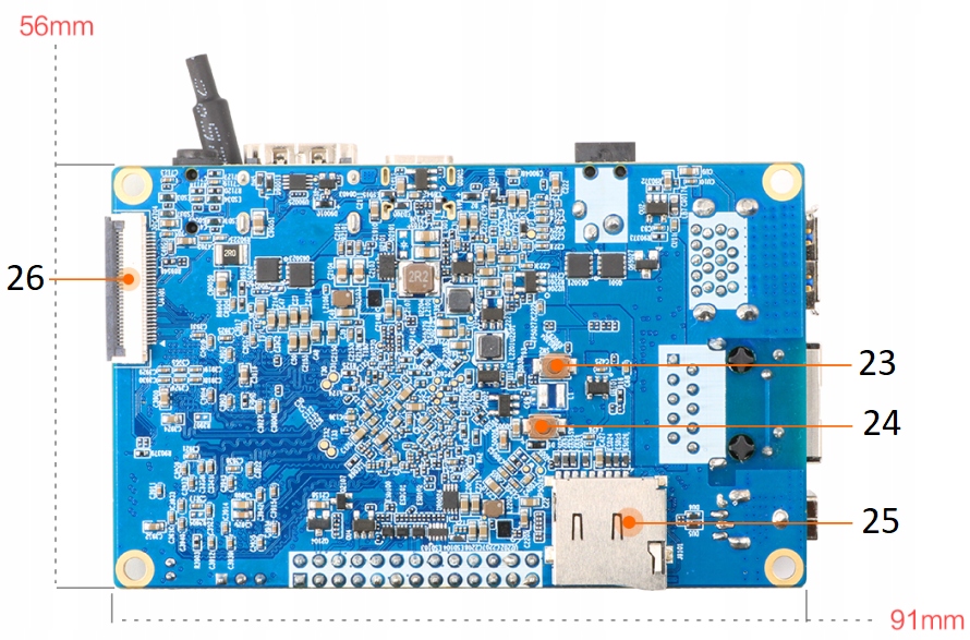 Orange Pi 4 LTS wyposażony jest w wiele rodzajów popularnych interfejsów, takich jak wyjście HDMI, Micro SD, USB2.0, USB3.0, USB-C, 3.5mm jack, MIPI CSI.