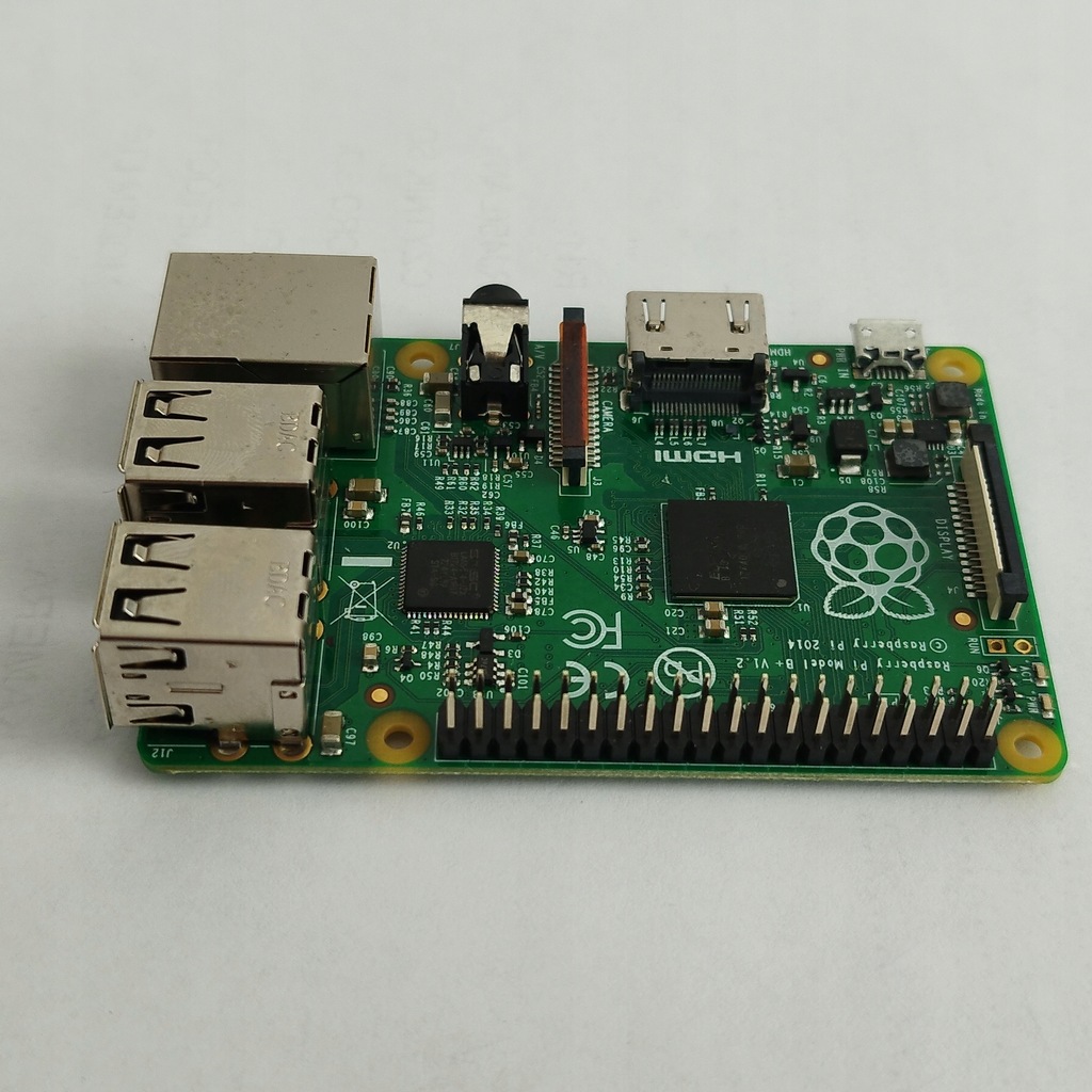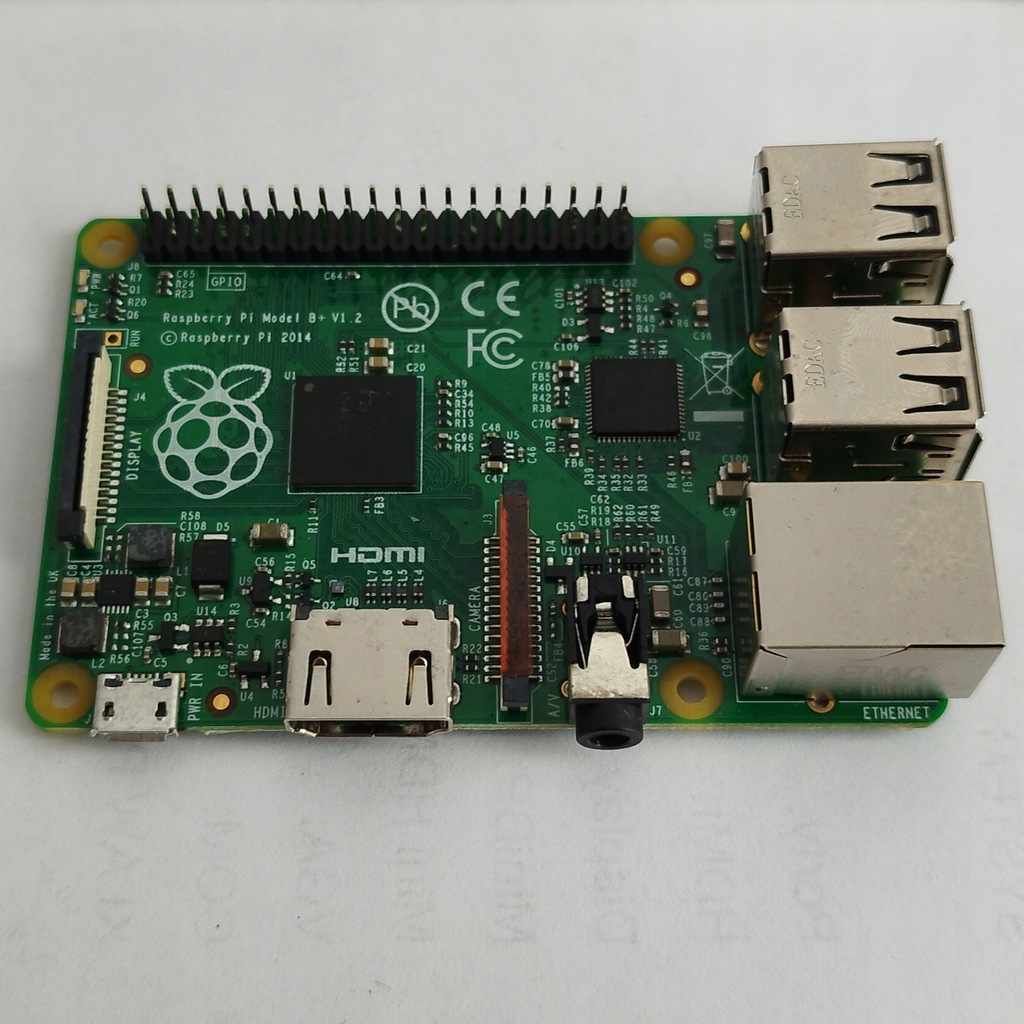 Raspberry Pi B+ to komputer jednopłytkowy z procesorem Broadcom BCM2835 taktowanym zegarem 700 MHz z rdzeniem ARM1176JZF-S. Pamięć RAM ma pojemność 512 MB. Komputer jest rozwinięciem modelu B, nowe cechy to m.in.: