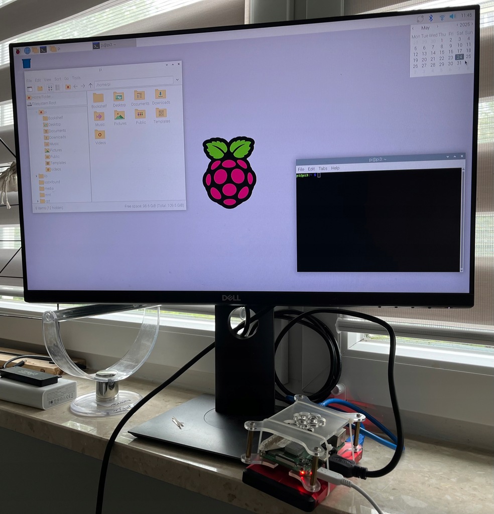 Zestaw zawiera Raspberry Pi w wersji 3 B+ wraz z oryginalnym zasilaczem 5 V / 2,5 A oraz dyskiem SATA 120GB. Urządzenie bootuje z USB. Lepsze rozwiązanie (lepsza wydajność) niż z karty SD. Urządzenie wykorzystane przez ok. 3l jako serwer plikow w Dockerze. Swieżo zainstalowany Raspbian.