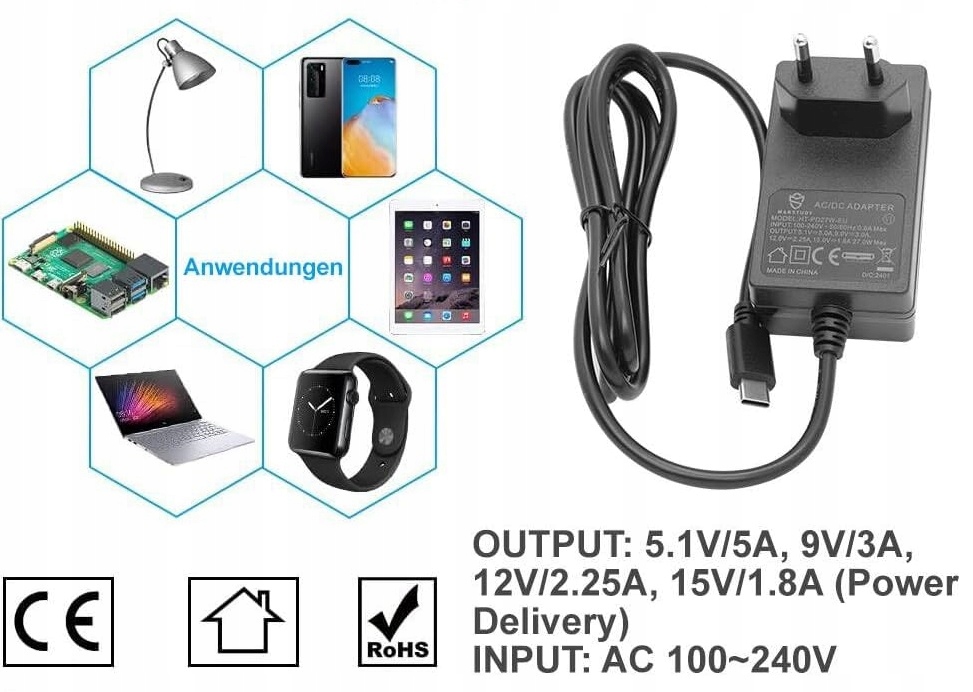 - Zawiera zasilacz USB C 27 W, idealny do Raspberry Pi 5, szczególnie dla użytkowników, którzy chcą obsługiwać urządzenia peryferyjne o wysokiej wydajności, takie jak dyski twarde i SSD, za pomocą czterech portów USB Raspberry Pi 5. Dzięki dodatkowym zintegrowanym profilom zasilania zasilacz USB-C jest również doskonałą opcją zasilania kompatybilnych z PD produktów innych firm