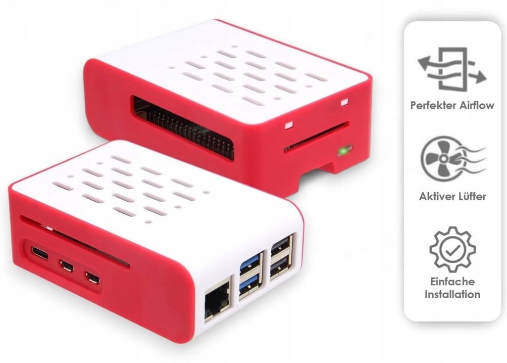Zaprojektowany specjalnie do Raspberry Pi 5 z dostępem GPIO. Kanał przepływu powietrza i otwór wylotowy redukują hałas wiatru. Zaawansowane tworzywo sztuczne akrylonitrylo-butadieno-styrenowe, bezzapachowe.