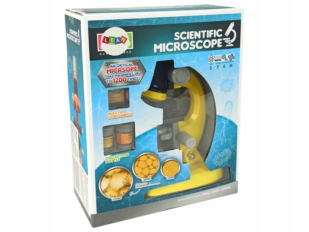 Mikroskop Dla Naukowca Zestaw Edukacyjny Żółty 100x 400x 1200x