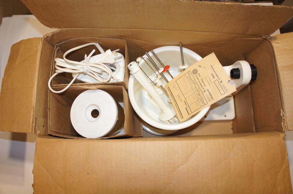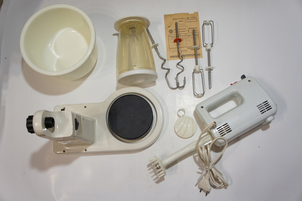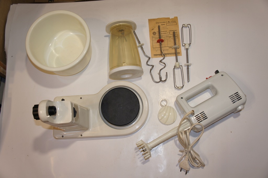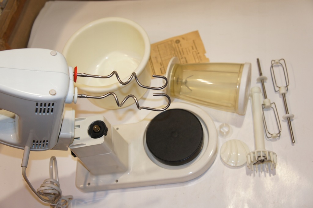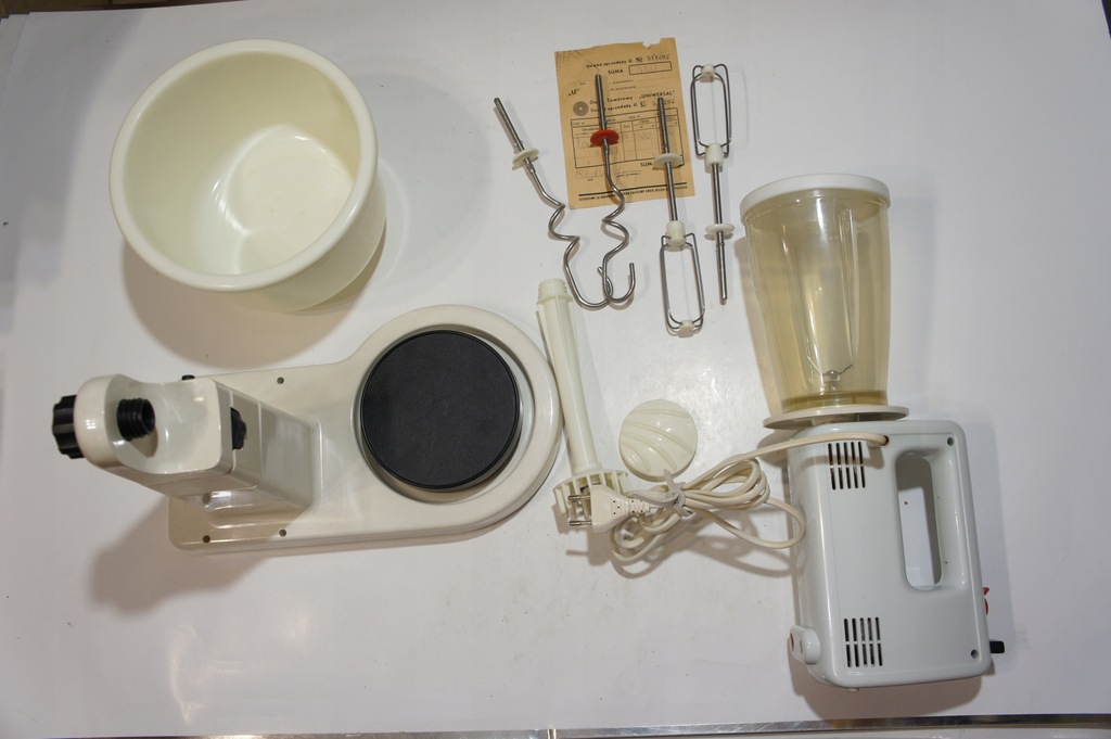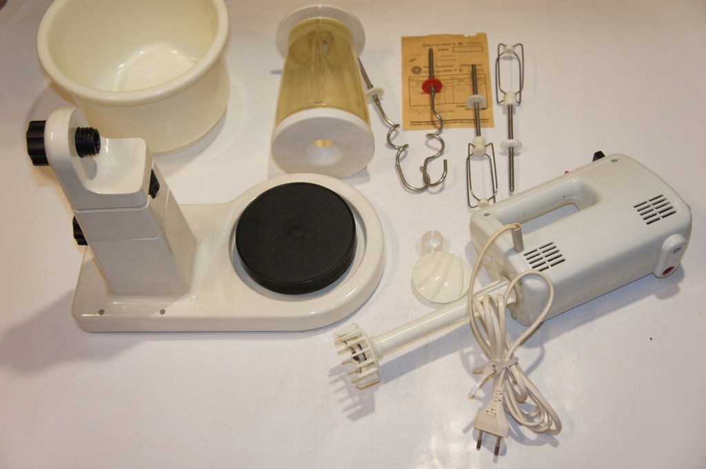 w komplecie mikser , 4 mieszadła , 1 nakładka na mieszadło , 1 Nasadka Miksująca "wieżyczka "- BLENDER,MISKA, ZAŚLEPKI, SHAKER, DOWÓD ZAKUPU , STOJAK do PRZYMOCOWANIA MIKSERA, itp.