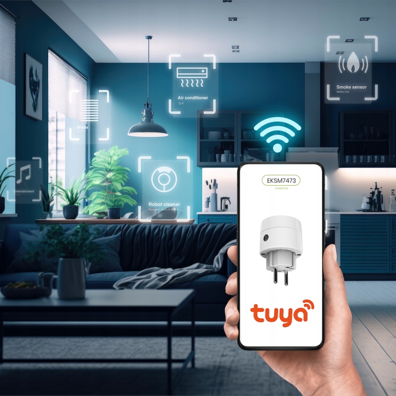 Inteligenta wtyczka WI-FI o mocy 2300W. Twój dom również może być SMART. Dzięki rozwiązaniom Eko-Light jest to prostsze niż kiedykolwiek. Nie wyłączyłeś żelazka, oświetlenia, choinki, grzejnika? Żaden problem wystarczy nowoczesna wtyczka SMART dzięki której będziesz mógł zdalnie zarządzać urządzeniami elektrycznymi. Dodatkowo możesz zaprogramować cykl włączania/wyłączania urządzeń według ustalonego harmonogramu. Wtyczkę łączymy z telefonem aplikacją TUYA poprzez WI-FI – co zapewni nam kontrolę nad podłączonym urządzeniem.