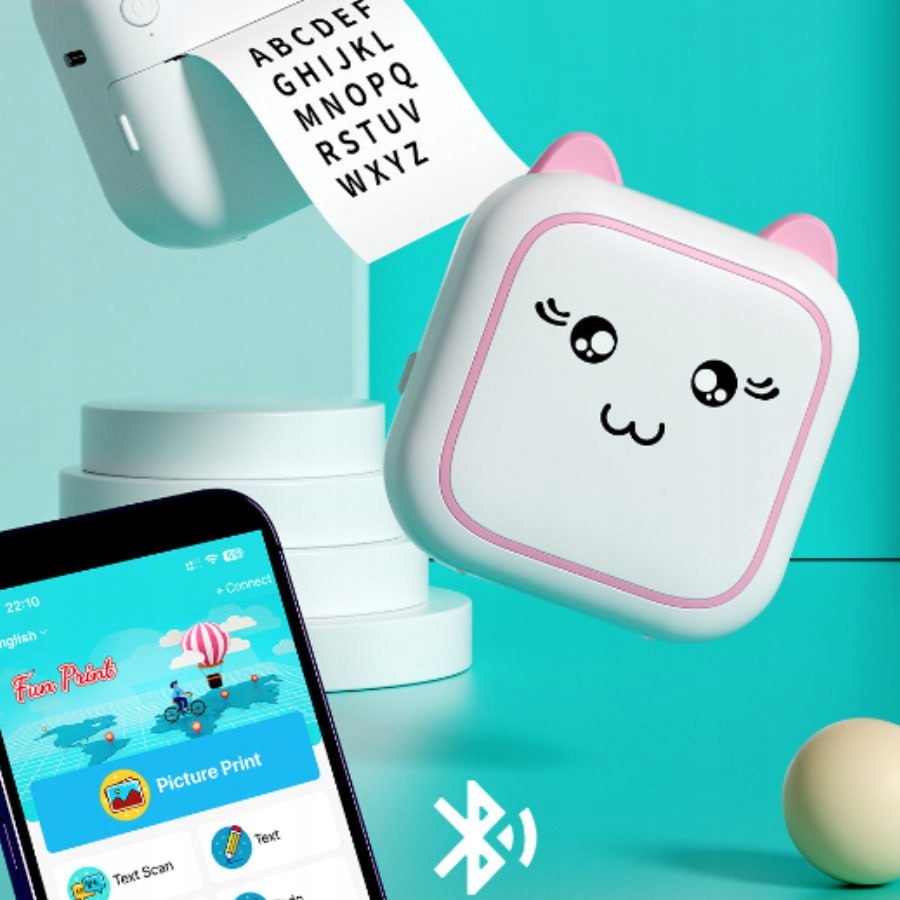 MINI DRUKARKA TERMICZNA DLA DZIECI MODEL 2024 - PRZENOŚNA, DO NOTATEK I ZABAWY, APLIKACJA NA TELEFON