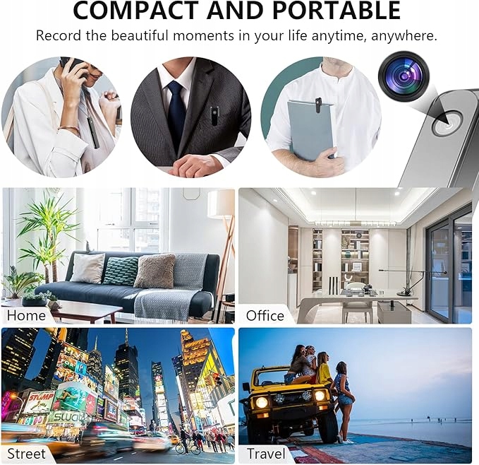 - Smukła i lekka kamera z wbudowanym klipsem łatwo mieści się na szyi, kieszeni i torbie, łatwa do przenoszenia do nagrywania wideo, spotkań biznesowych, podróży.