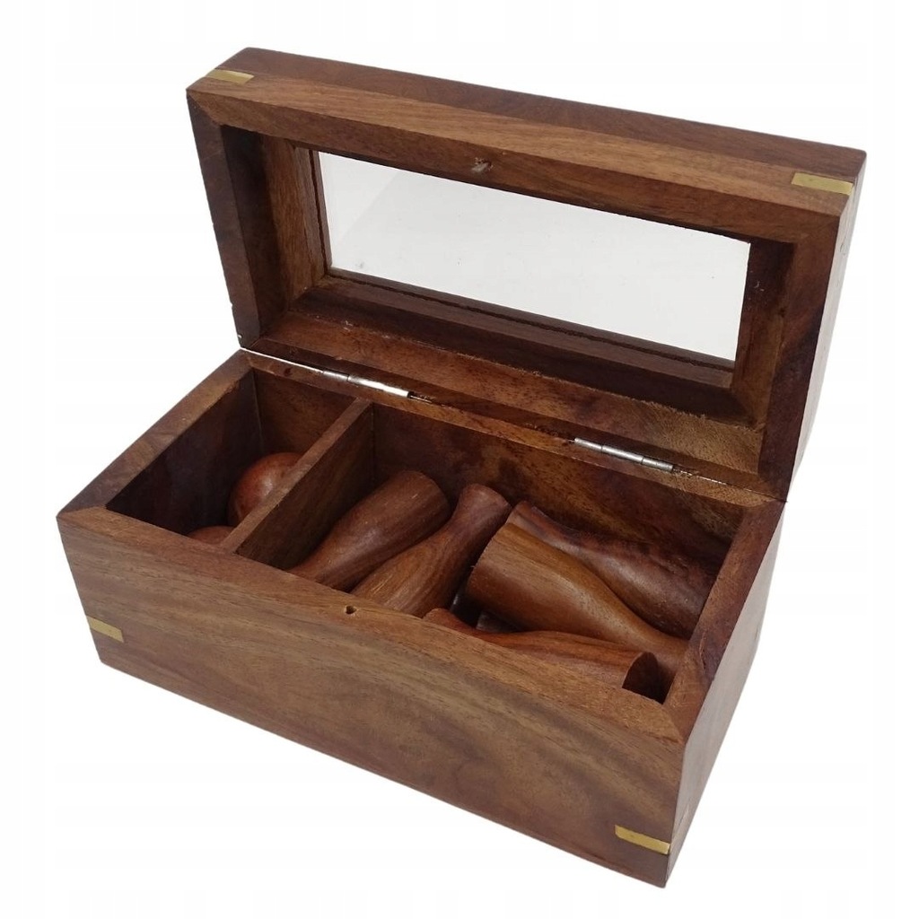 Uwaga! Trzymaj pudełko z dala od dziecka. Ze względu na szklany top pudełka zalecamy zabawę z dziećmi samymi kręgami i kulą.